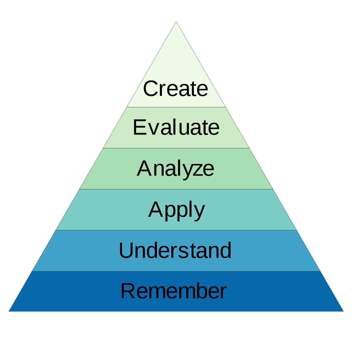 Blooms' Taxonomy : This hierarchical pyramid of cognitive levels of understanding is able to provide an instructor the ability to establish learning goals with clear purpose and level of rigor when designing for instruction.